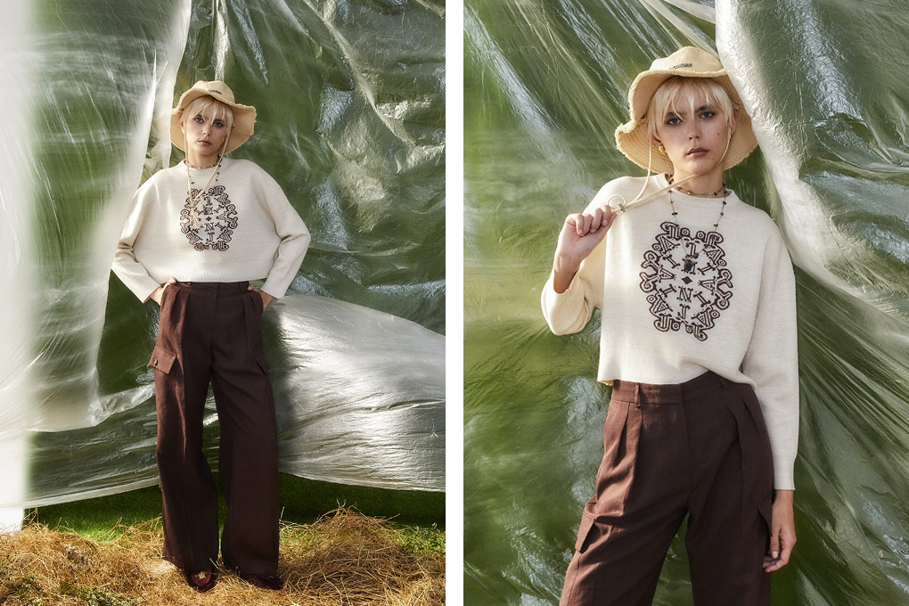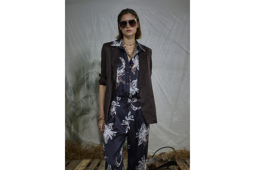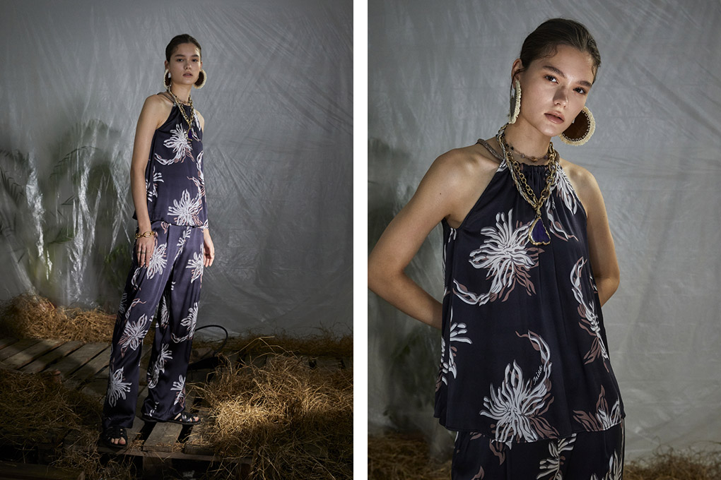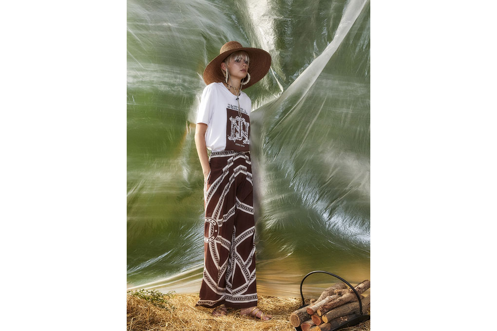 烟火LOGO字印花,搭配丝光面感桑蚕丝面料,素雅知性中融入随性的自在感,营造出极具原生质感的自然之美。