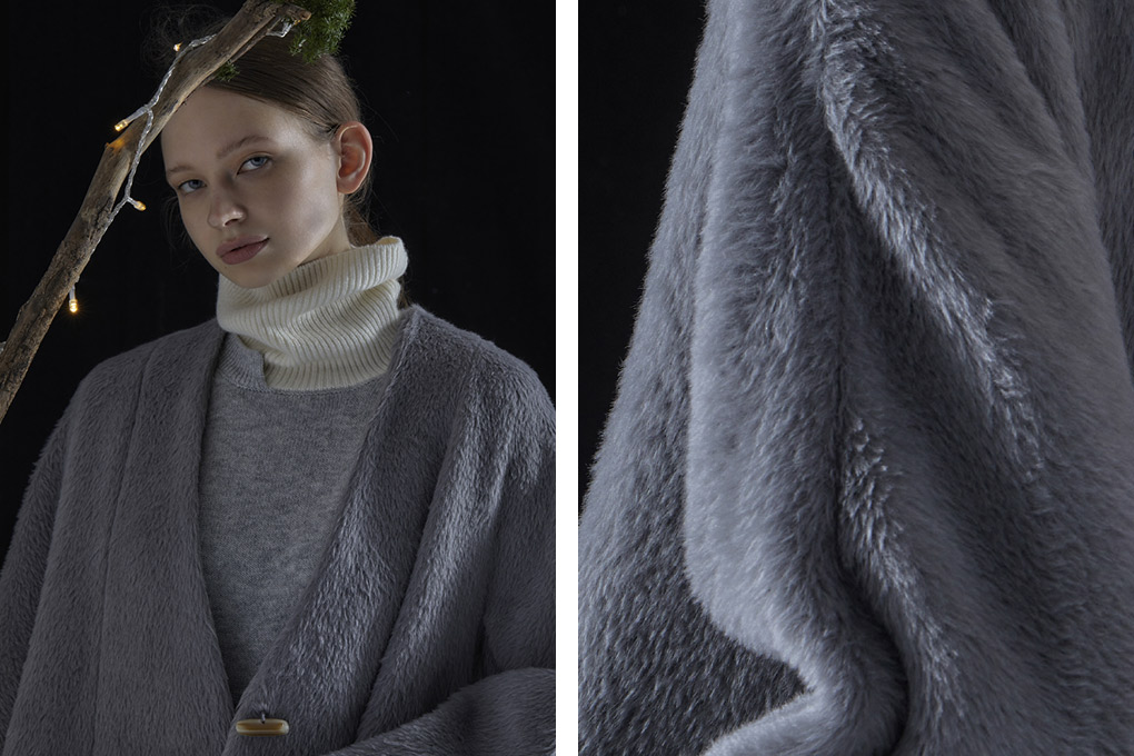 复古高领廓形大衣采用狐狸绒及羊毛羊绒混纺布料,狐狸绒平均细度16.5µm,空心纤维结构比起羊绒更加丰盈蓬松,比起驼绒更加细腻柔软,且更顺滑。立体H型轮廓结合飒美及踝衣长,营造随性慵懒感,无限包容各种身材,上身气场十足。